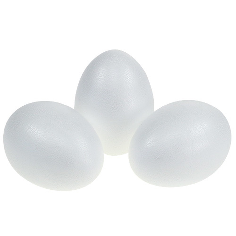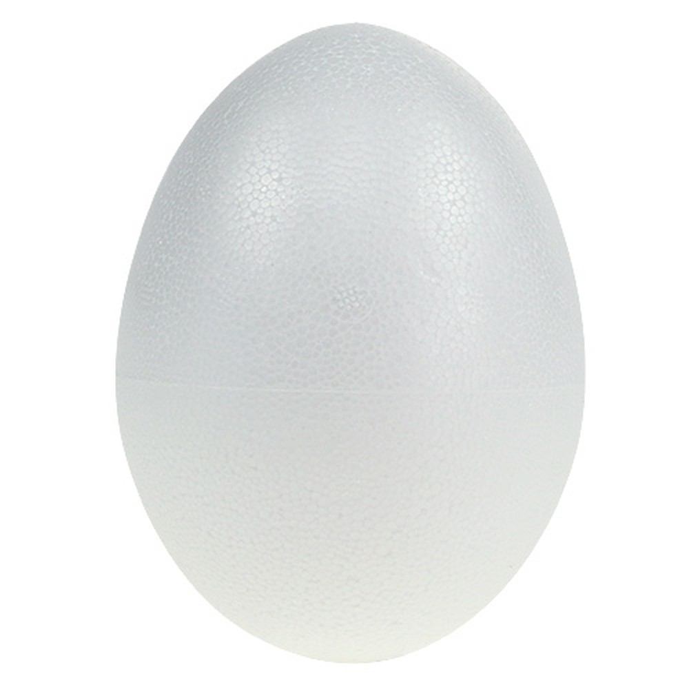 De hvite styrofoam-eggene leveres som et sett på 5 og er i ett stykke. Du kan selvfølgelig kutte disse til størrelse med en kniv og tilpasse dem individuelt til din dekorasjon. Hvert isoporegg er rundt 12 centimeter høyt og rundt 8,5 centimeter i diameter.