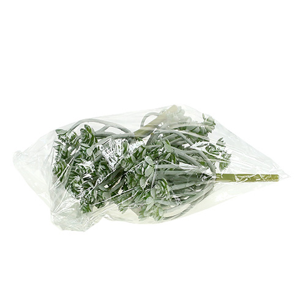 Den saftige Echeveria i grått leveres i en pakke med 3 stykker, hvor hver enkelt dekorative saftige er ca. 17 centimeter lang. Diameteren på blomsterhodet er omtrent 12 centimeter. Så du kan også sette sammen en liten bukett med tørkede blomster og andre naturlige dekorasjoner i kombinasjon med denne Echeveria, som også er en vakker blikkfang om høsten.