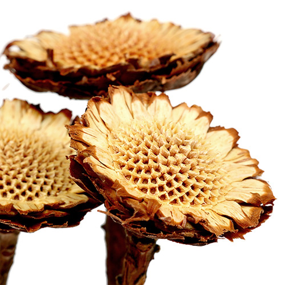Den vakre rosetten passer perfekt inn i en begravelsesordning, den glødende blomsten står for et evig liv. I kombinasjon med andre tørkede blomster fra Protea-slekten, kan du trylle frem grasiøse og trøstende minnearrangementer.