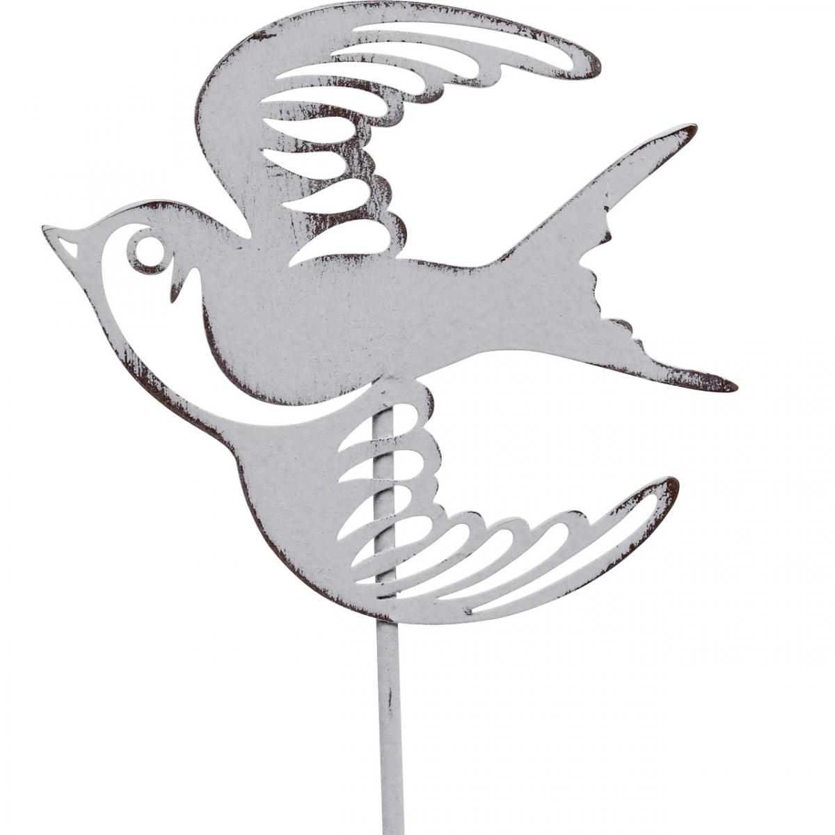 Svaledekorasjon, veggdekorasjon laget av metall, fugler til å henge hvite, sølv shabby chic H47,5 cm