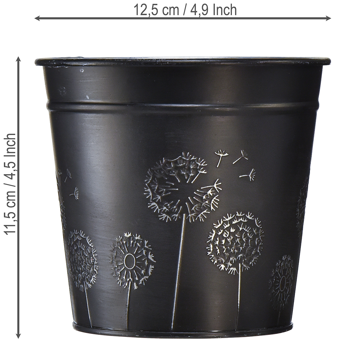Svart og sølvfarget blomsterpotte, metallplanter, Ø12,5 cm H11,5 cm