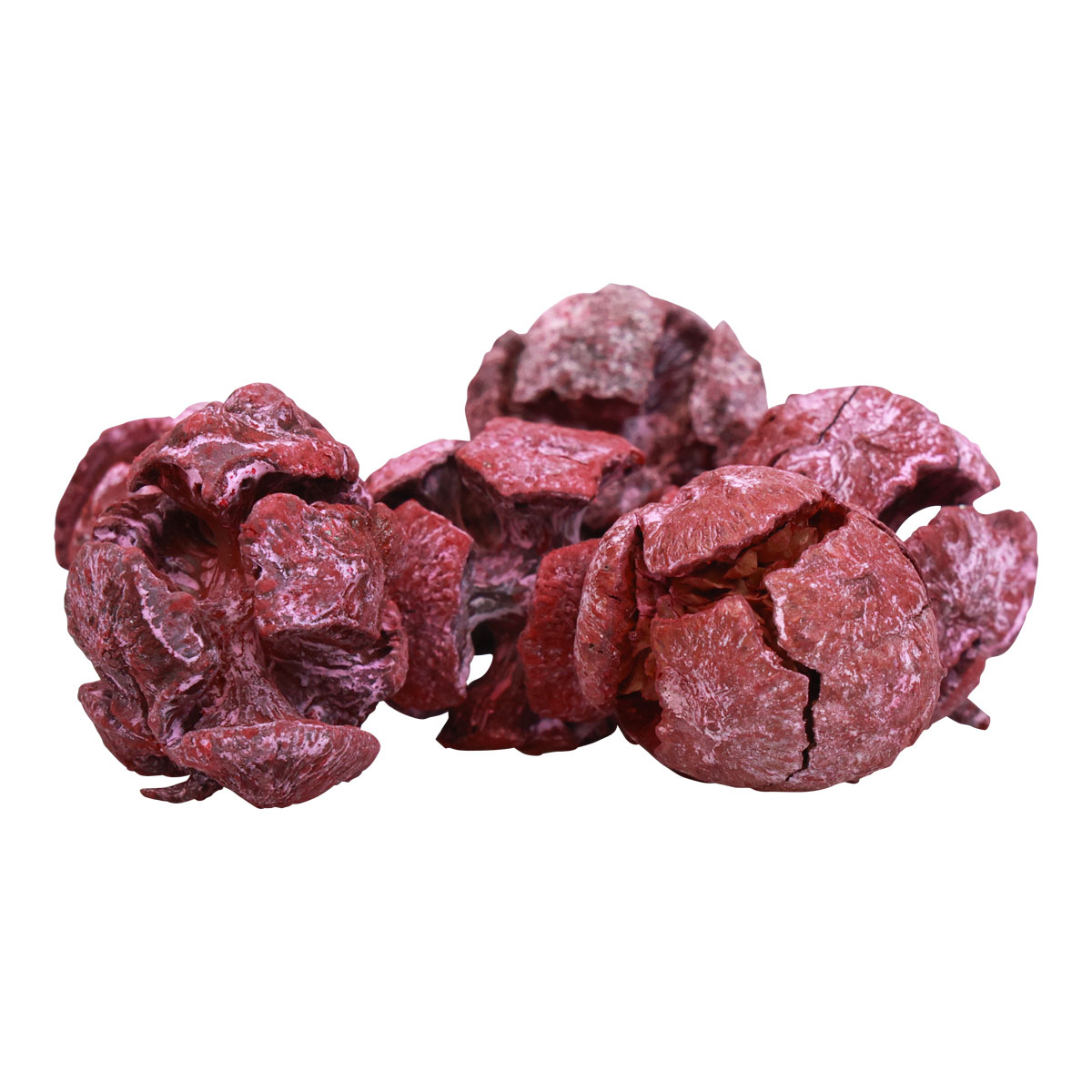 Produktnavn: Sypresskjegler frostet naturdekor 3cm mørk rød 500g