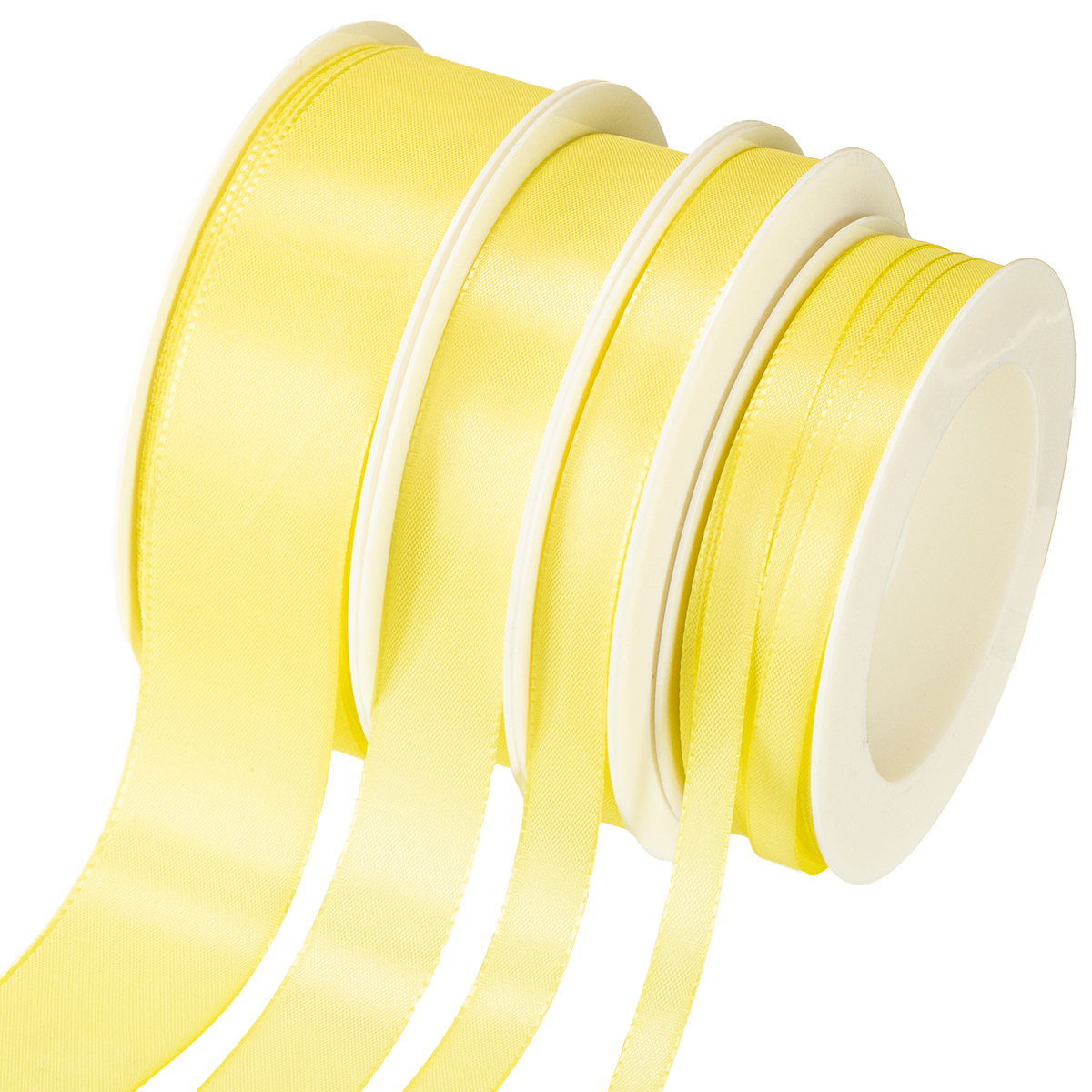 Taffetabånd gavebånd lys gul forskjellige størrelser 50m