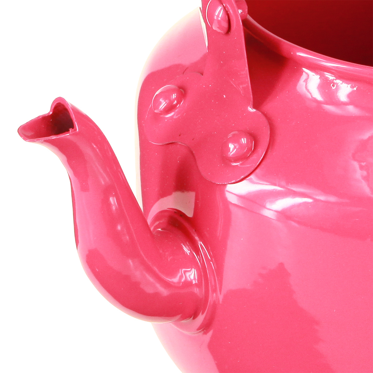 Denne rosa metalltekannen er raskt i ferd med å bli et must for alle som elsker rustikk og romantisk innredning. Den er et flott dekorativt element på spisebordet, et originalt alternativ til blomstervaser eller en sjarmerende detalj i en koselig stue. Den passer også perfekt sammen med andre produkter i landlig stil. Nysgjerrig? La deg inspirere og bring et snev av ren komfort inn i hjemmet ditt med denne tekannen!