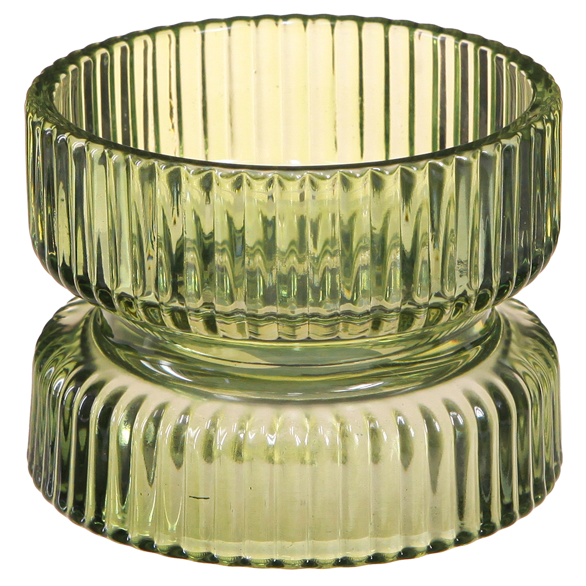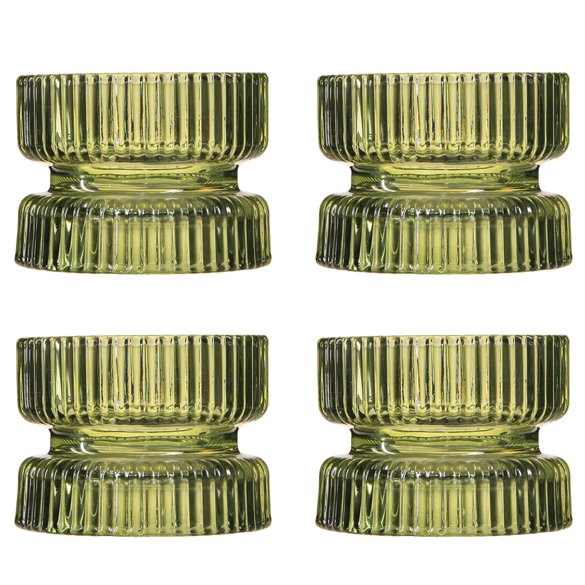 Telysholder glass dekorativ ribbet grønn Ø9cm H7cm 4 stk