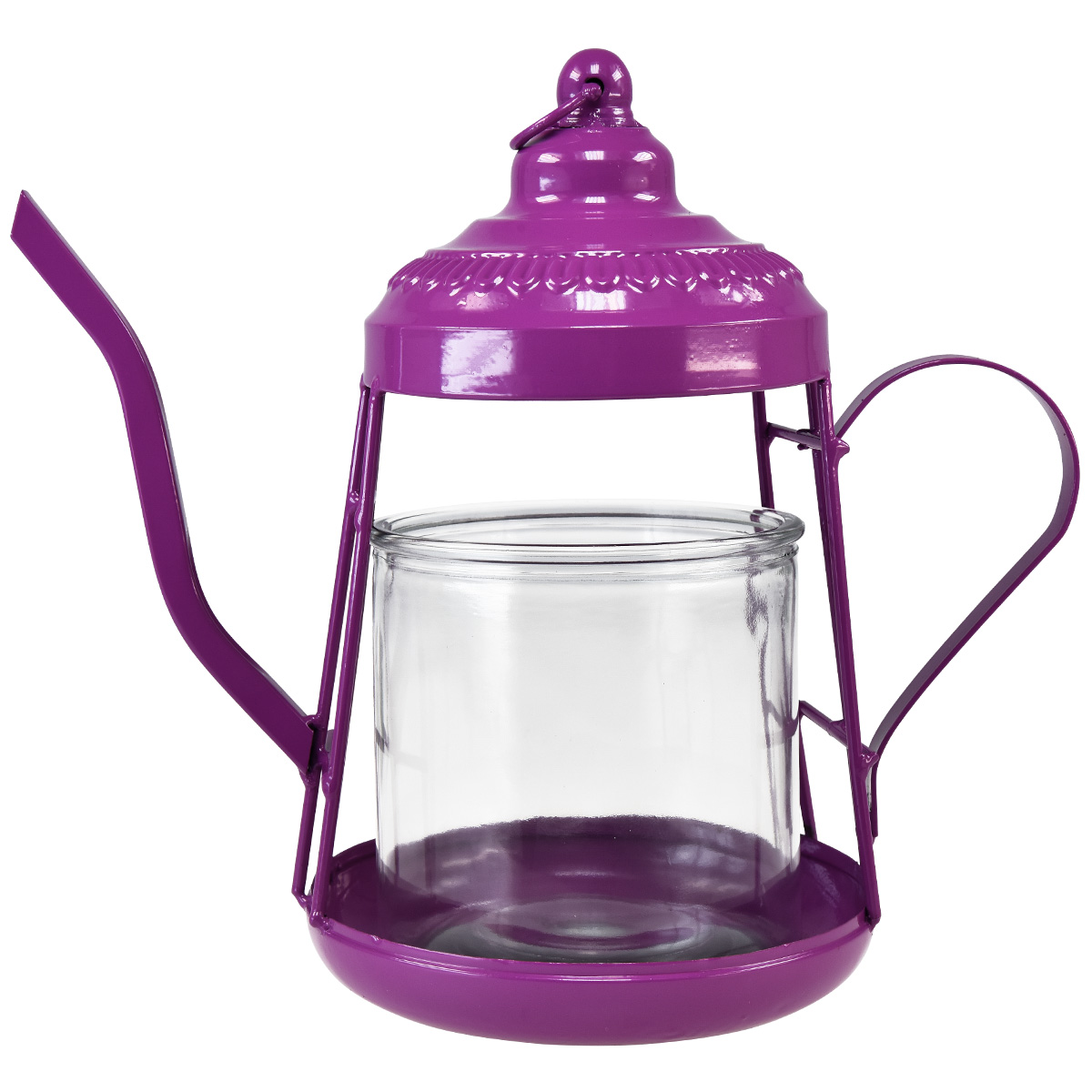 Telysholder glass lanterne tekanne rosa Ø15cm H26cm