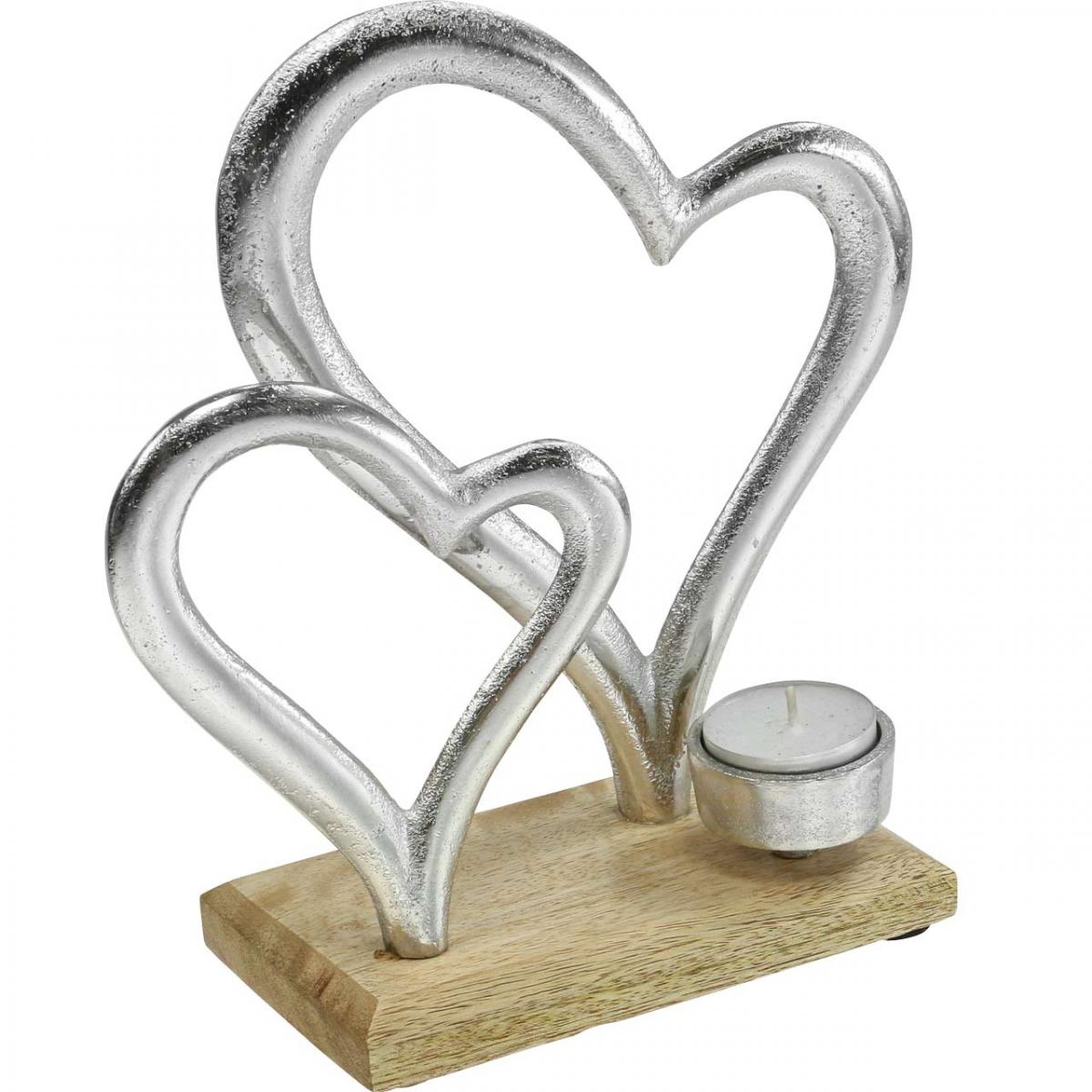 Telysholder hjerte metall dekorasjon borddekor tre 22cm