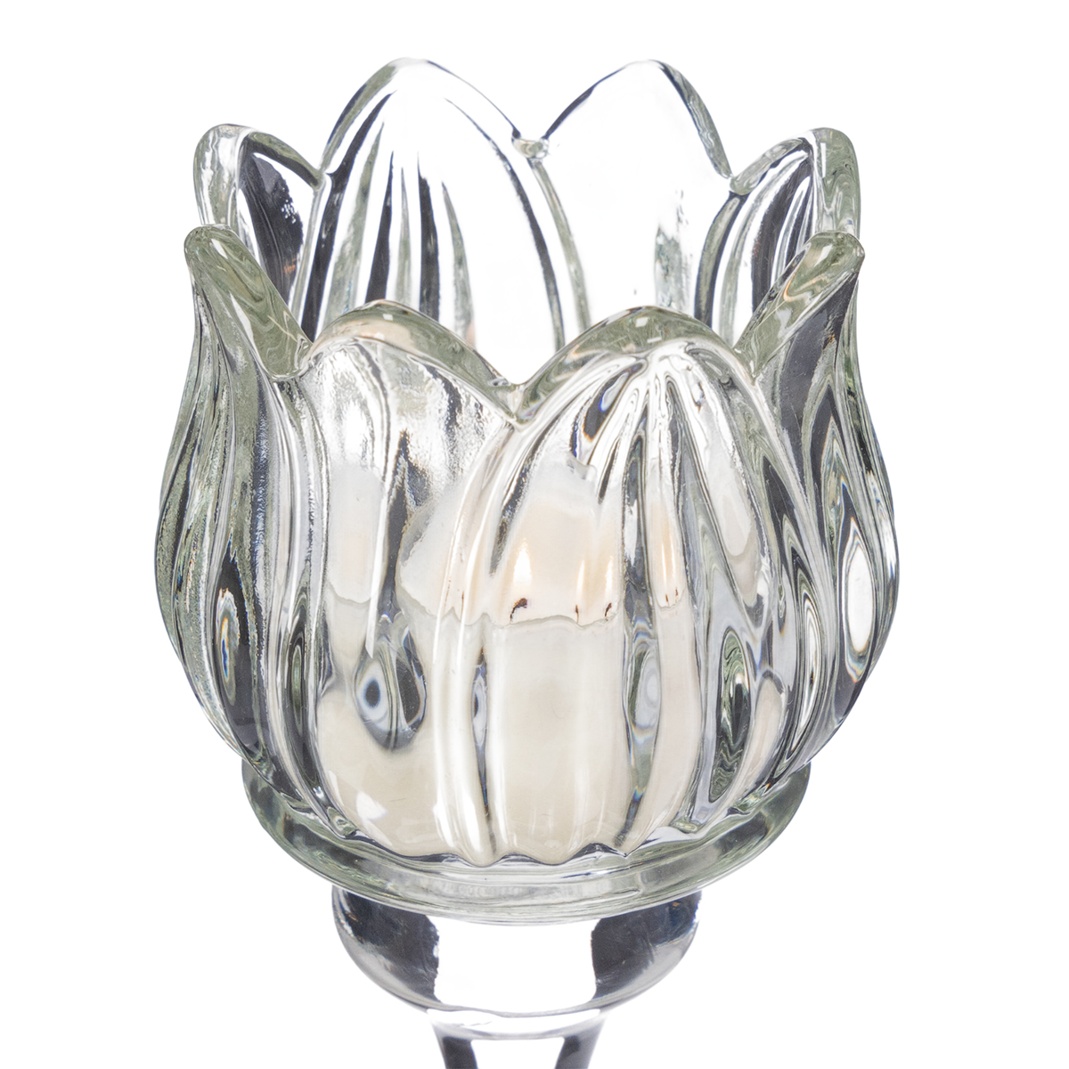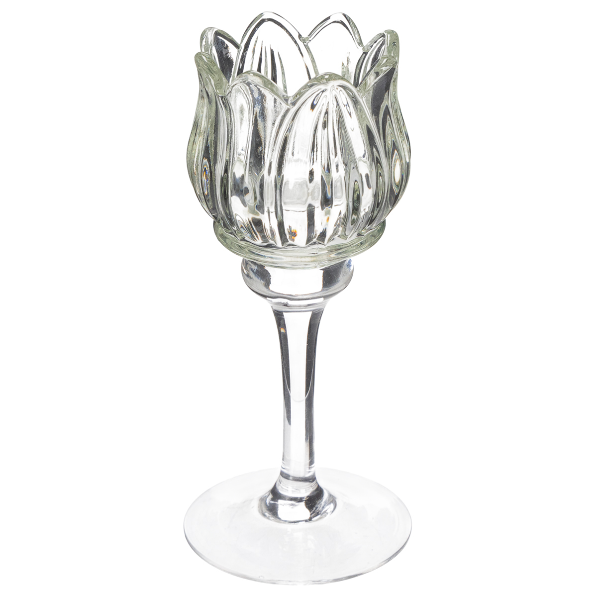 Telysholder i glass, dekorativ blomsterform for en stilig atmosfære, 17 cm