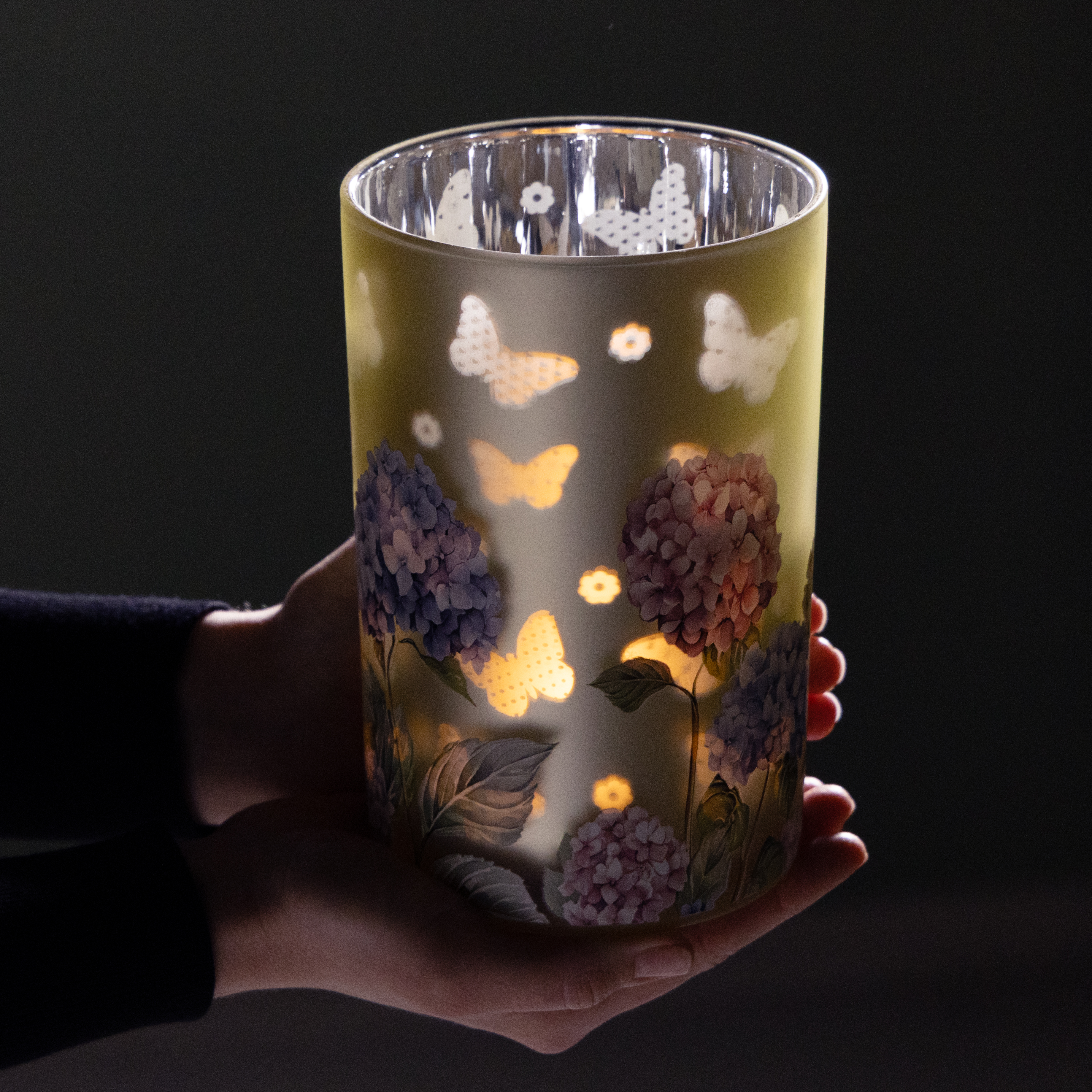 Øyeblikk med harmoni og varme – det er akkurat det vi trenger i våre egne hjem, ikke sant? Med denne telysholderen i glass, utsmykket med et elegant blomstermotiv, kan du skape en innbydende atmosfære som oppmuntrer til avslapning og nytelse. Det spesielle: den speilbelagte innsiden reflekterer forsiktig stearinlyset, og skaper fortryllende effekter som bader ethvert rom i en koselig glød. Elsker du samspillet mellom eleganse og funksjonalitet? Da er denne telysholderen perfekt for deg!