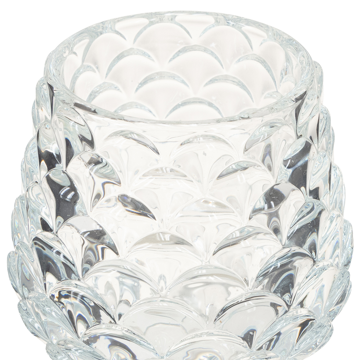 Noen ganger er det de små detaljene som utgjør hele forskjellen. Elsker du å skape en koselig og innbydende atmosfære med lys og dekorasjon? Da vil du elske «Telysholdere i glass med kjegler og base»! Dette settet, som består av to telysholdere i forskjellige høyder, imponerer med sin enkle eleganse og sofistikerte design som passer perfekt inn i en rekke interiørstiler. De klare glasslamellene minner om en fortryllende kongle – delikate, stilige og tidløse. Enten som blikkfang i stuen, et høydepunkt på festbordet eller en romantisk lyskilde for en koselig kveld: disse telysholderne er virkelig et multitalent!