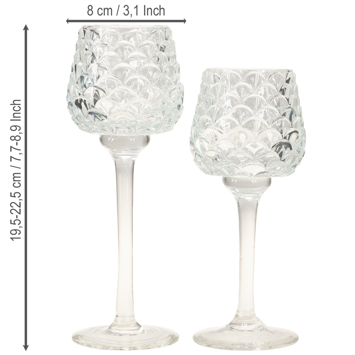 Telysholder i glass med kjegleformet base, H19,5/22,5 cm, sett med 2 stk.