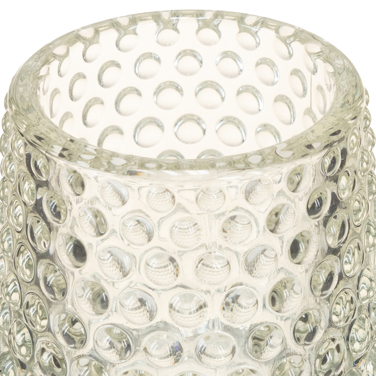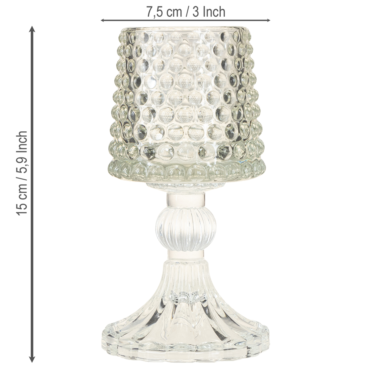 Produktnavn: Telysholder i glass med prikker og riller i basen, H15 cm, 2 stk.
