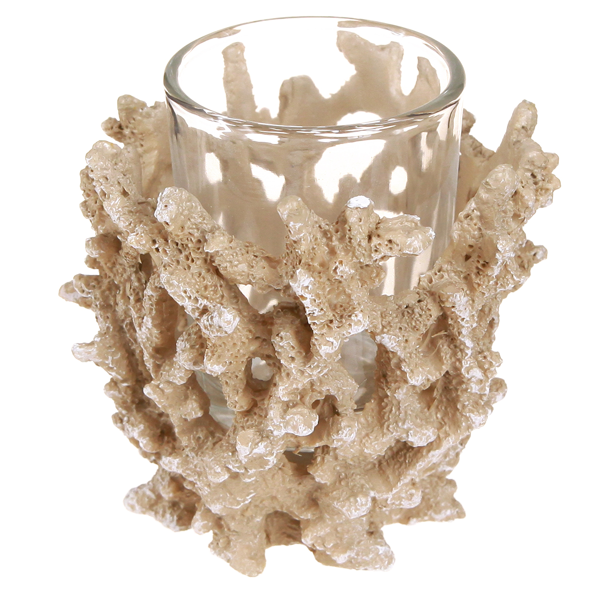 Produktnavn: Telysholder koralldekor maritim krembrun H9cm 2stk