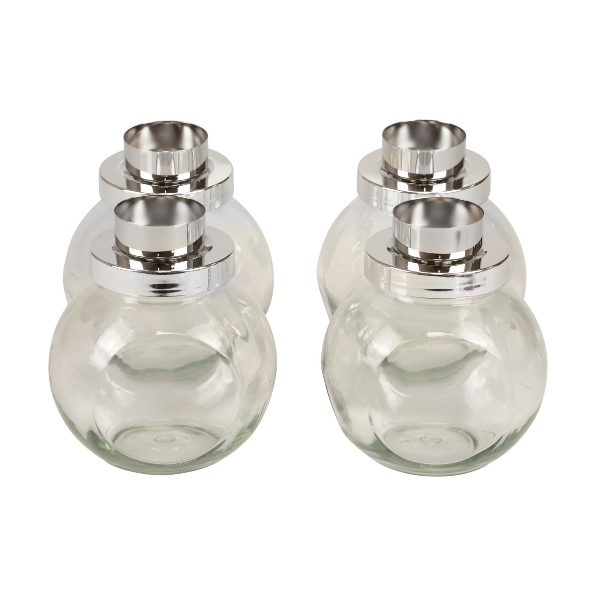 Telysholder lysestake glass metall sølv Ø10,5cm 4stk
