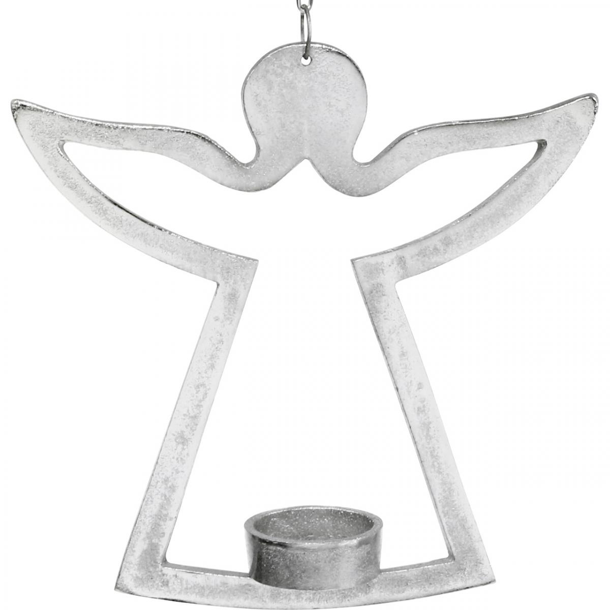 Telysholder med engel, lysdekorasjon til å henge, metall sølv H20cm