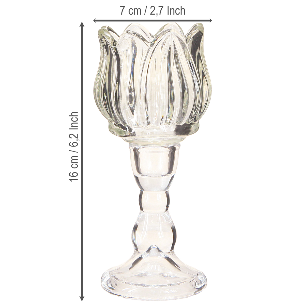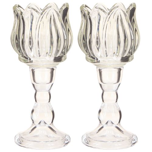 Telysholder tulipan telysglass med sokkel klar Ø7cm H16cm 2stk