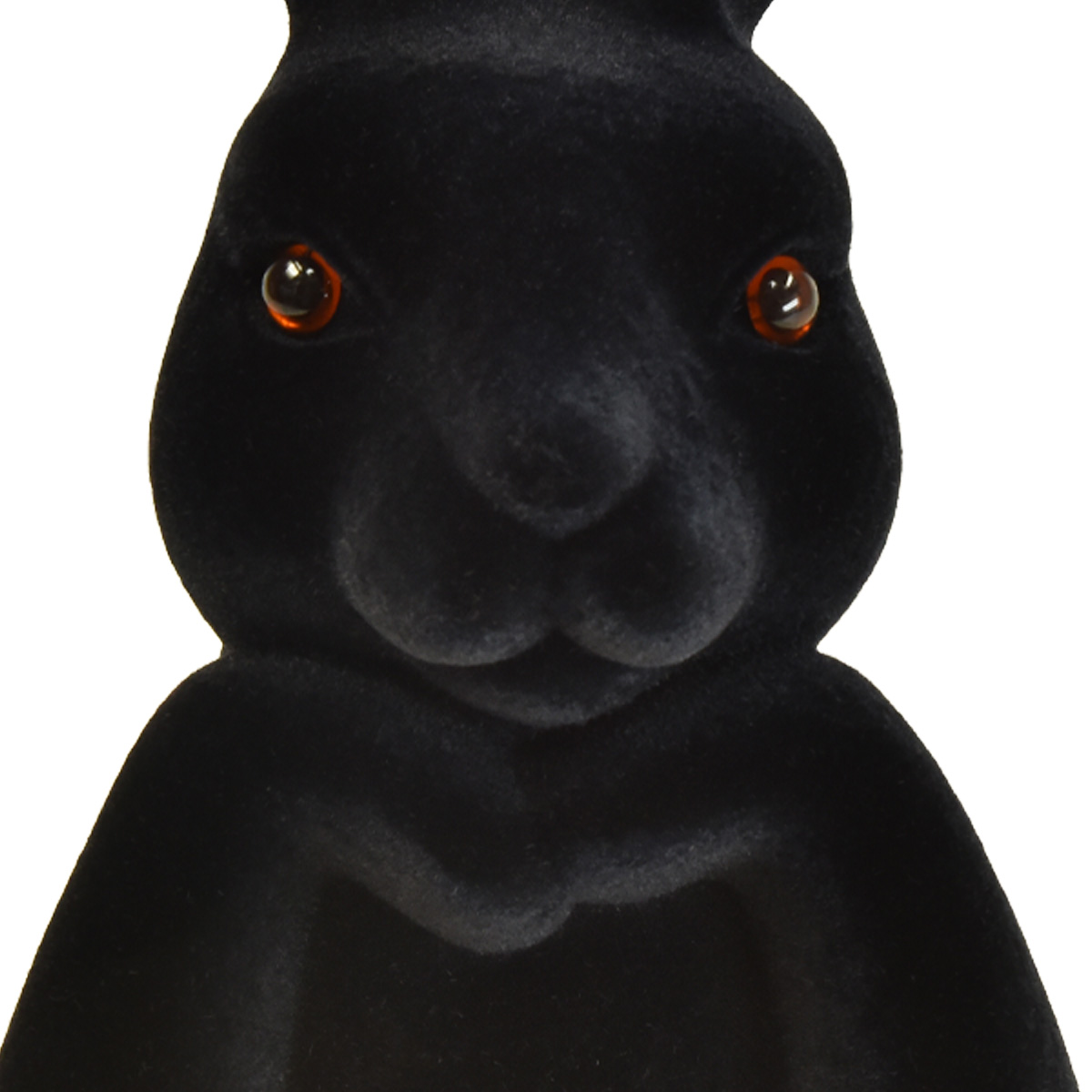 Og her er svart virkelig svart! De bitte små hårene som gjør denne tette flokkingen mulig gir også den intense fargen. De ravfargede øynene til kaninbysten gjør resten for å få denne påskedekorasjonen til å fremstå elegant og mystisk på samme tid.