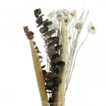 Den naturlige fargen på den naturlige dekorasjonen varierer fra lysegrønne til gule toner til brun. Hver del av den tørre dekorasjonen din er naturlig unik. I tillegg tilbyr vi deg et stort utvalg av naturlige produkter i bleket eller diskret farget versjon på nettet. En valgt fargepalett er tilgjengelig for deg: Kombiner etter eget ønske og sett sammen din egen bukett!