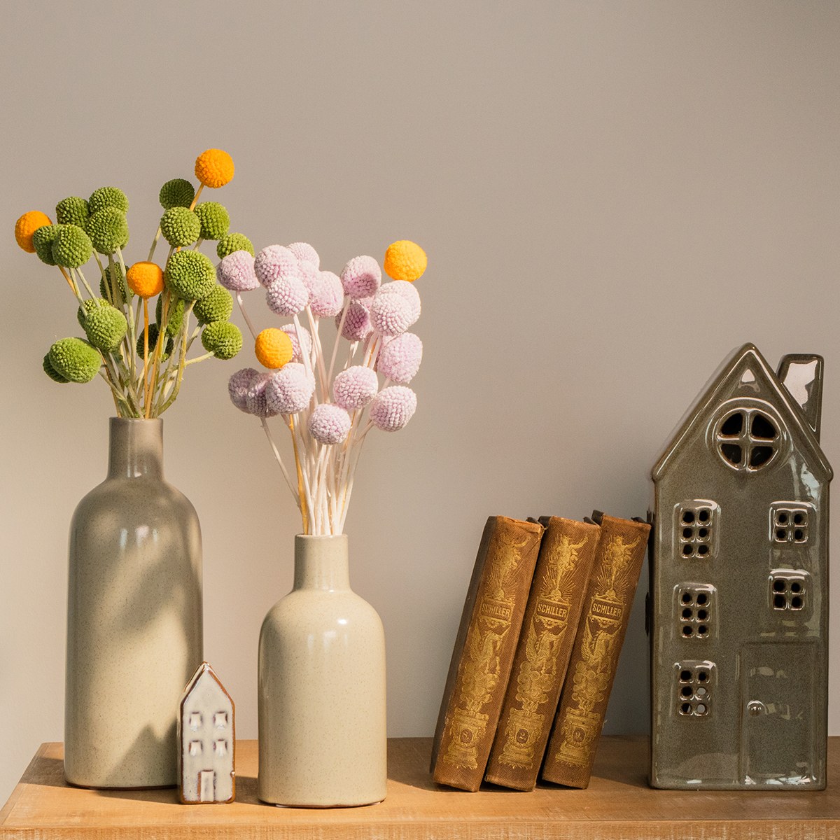 Disse tørkede blomstene med Craspedia er ikke bare et bærekraftig valg, men takket være deres langvarige natur vil de gi deg glede i mange år. Bestill enkelt på nett og oppdag hvor allsidige disse høstlige høydepunktene kan være i innredningen din.