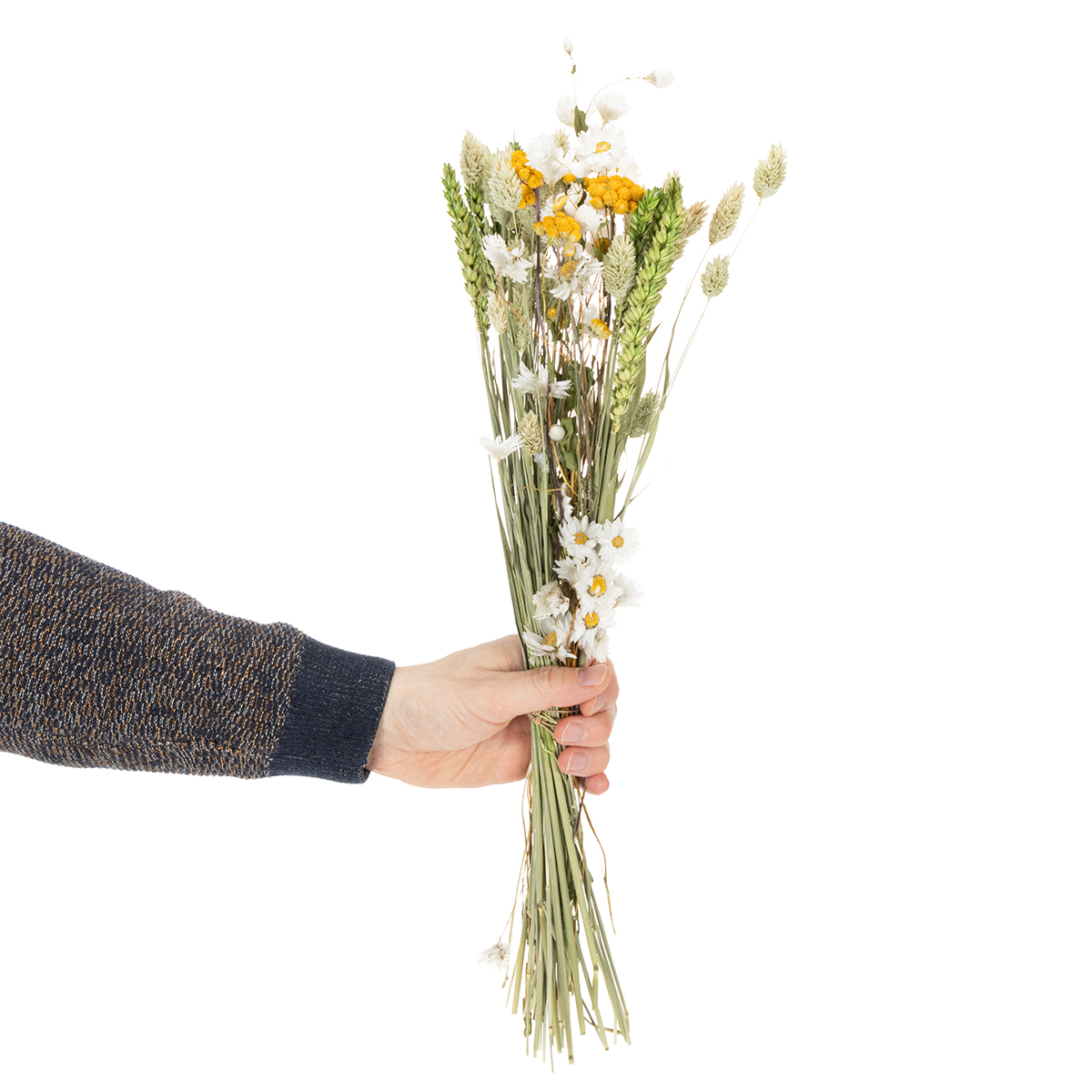 Takket være de naturlige og holdbare materialene er denne buketten enkel å stelle og beholder sine livlige farger i årevis. Et forsiktig dryss er alt som skal til for å bevare skjønnheten. Den er også et flott alternativ til friske blomster, da den verken krever vann eller spesiell pleie. Opplev tørkede blomsterdekorasjoner på sitt beste!