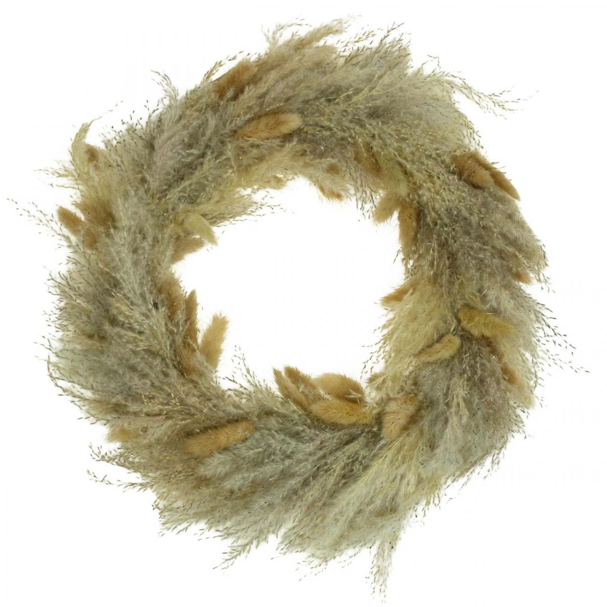 Tørket blomsterkrans, pampasgress, lagurus, bohemsk hengende dekorasjon, naturlig dekorasjon, veggkrans, Ø31 cm