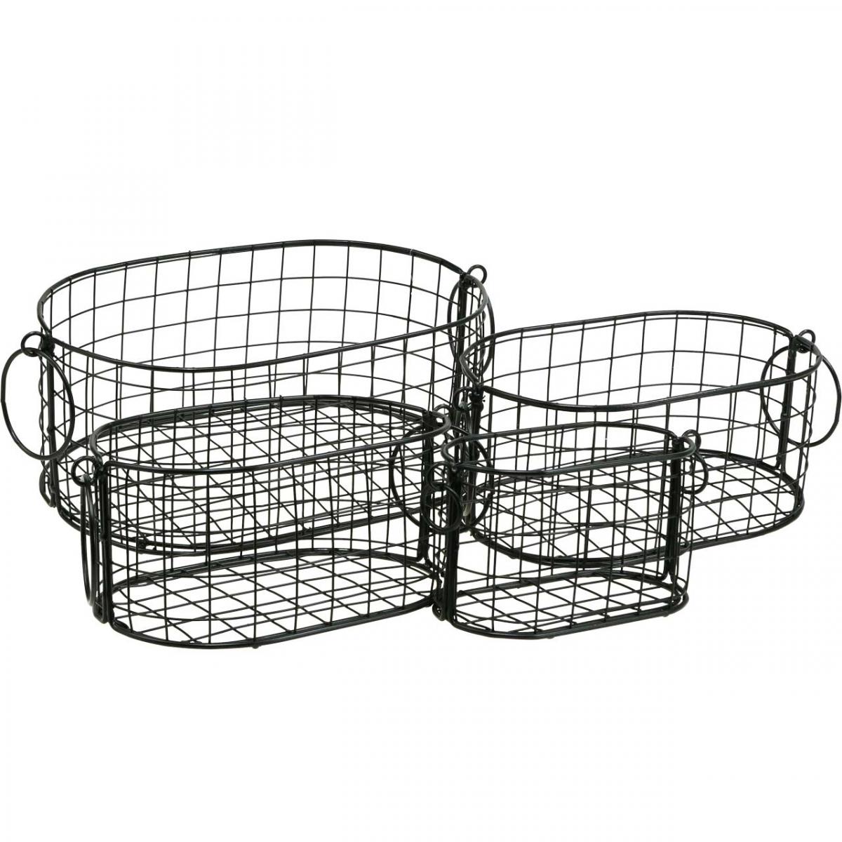 Trådkurv med håndtak metall sort 17-32cm sett med 4