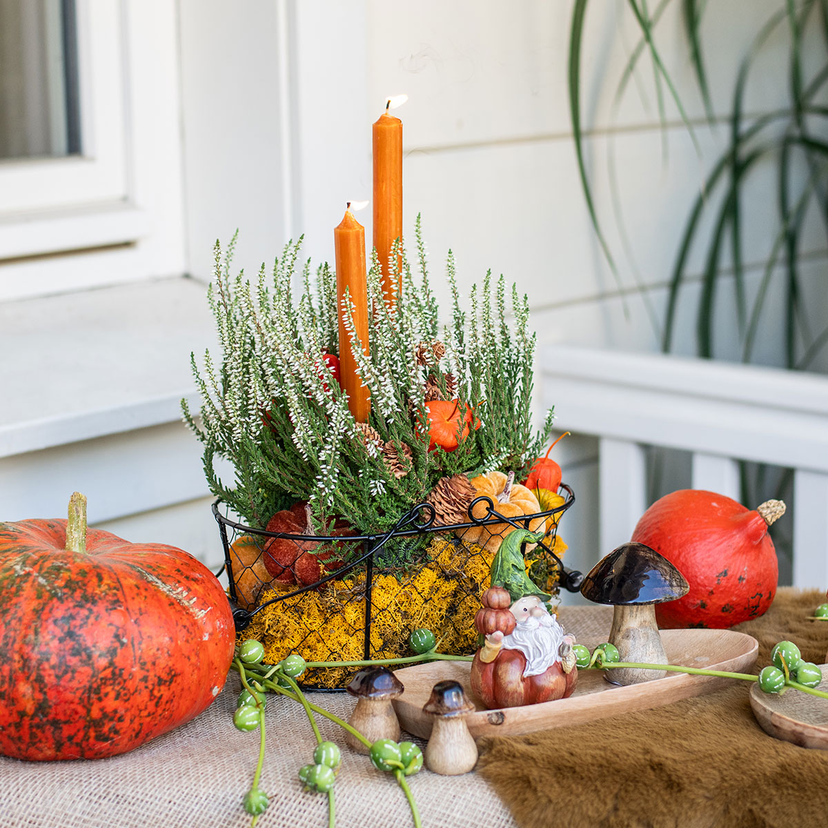 Trådkurven med håndtak gir en flott ramme for naturlige dekorasjoner, spesielt for vår- og påskedekorasjoner. Fyll kurvene med høy eller sisal som påskereir og omkranser blomsterpotter i rustikk og landlig stil. Vårblomster som påskeliljer og krokus ser ut til å vokse direkte i den dekorative kurven.