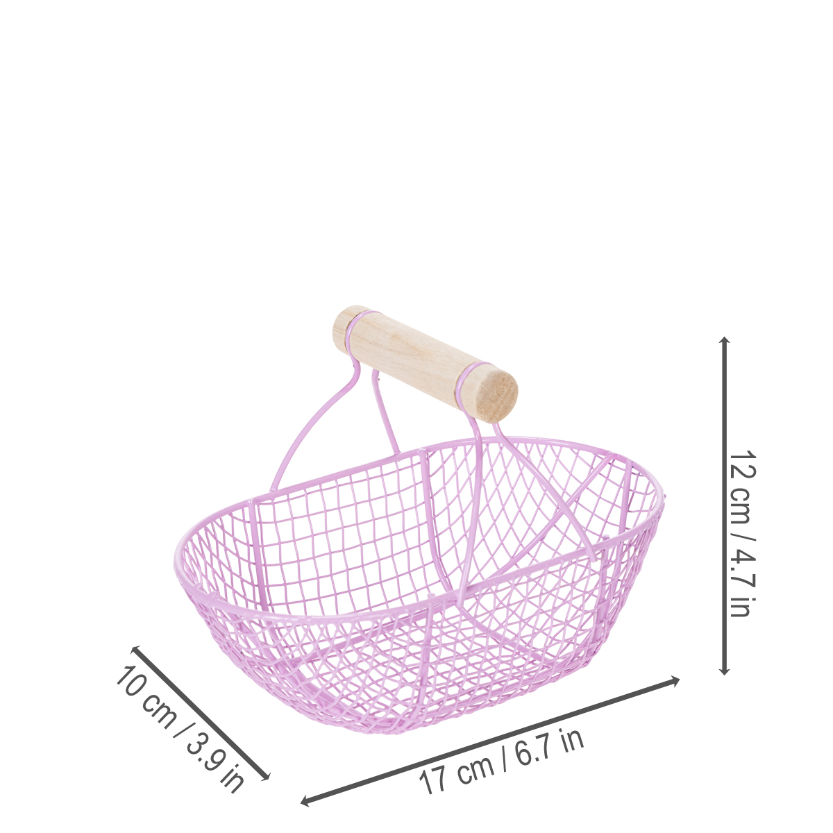 Gi hjemmet ditt et snev av stil! Denne nostalgiske trådkurven med trehåndtak imponerer med sitt minimalistiske design og harmoniske rosa og lilla fargetoner. De nøye utformede metallstaggene skaper et luftig design som er både dekorativt og praktisk. Bruk den på kjøkkenet for å stilig vise frem frisk frukt og grønnsaker, eller på kommoden for å organisere tilbehør og kosmetikk på en pen måte.