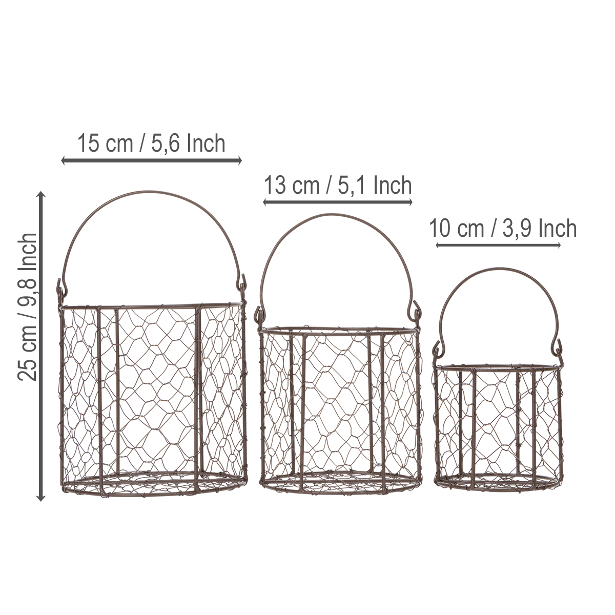 Trådkurvsett ideelt for bruk på kjøkkenet eller i hagen, 25 cm, 1 sett