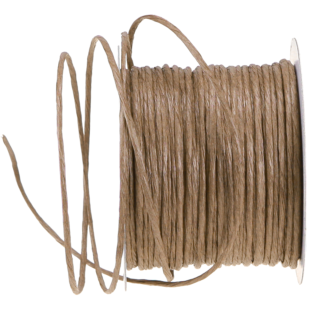 Den innpakkede ledningen i brunt er rundt 50 meter lang på en papirrulle og kan enkelt brukes til alle ideer om håndverk. Med et skarpt saks kan du kutte håndverkstråden, hvis diameter er omtrent 2 millimeter, og bringe den til ønsket størrelse.