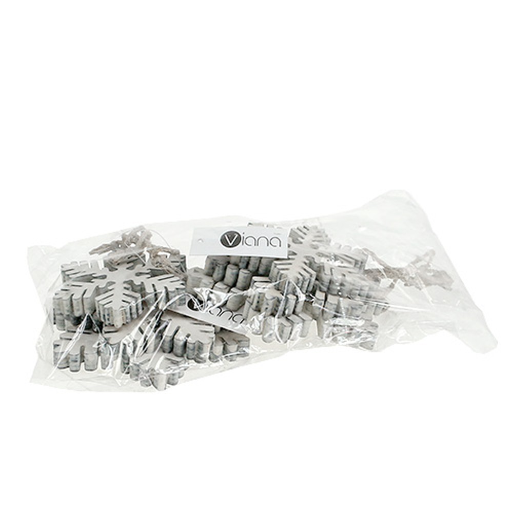 Snøfnuggene i tre er i en pakke med 6 stykker, som hver inneholder 2 ganger 3 størrelser, som er: 7, 10 og 12 centimeter. Med det lille linfibertauet, som er beregnet på oppheng og også har en hvit farge, har de dekorative snøfnuggene forskjellige lengder fra 16 til 20 centimeter.