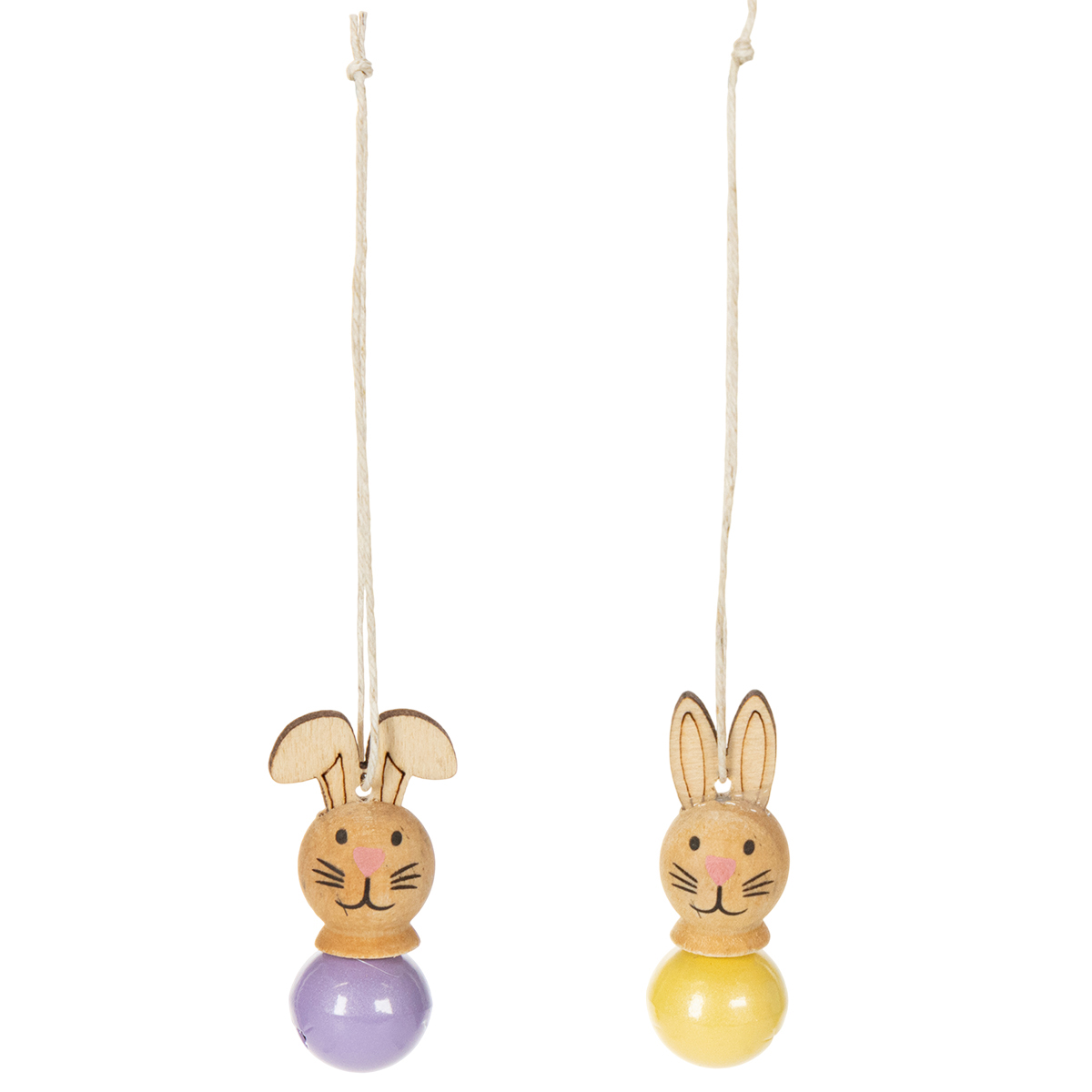Treanheng med påskeharepynt til vår og påsketre, 4 cm, 12 stk.