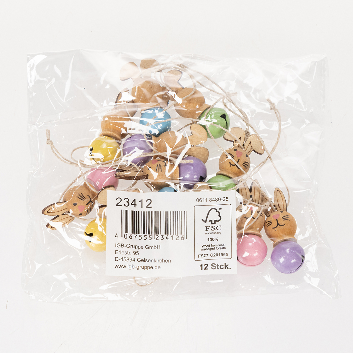 Våre dekorative kaninanheng kombinerer sjarmerende design med allsidige dekorasjonsmuligheter. Hvert av de tolv anhengene er laget av høykvalitets tre og er omtrent 4 cm i størrelse – den ideelle størrelsen som passer uanstrengt inn i ethvert rom. Kaninansiktene er laget med stor oppmerksomhet på detaljer: en liten nese, muntre øyne og delikate linjer – rett og slett bedårende! Et herlig preg er de små fargede metallklokkene, assortert i fem pastellfarger. De gir en leken aksent og produserer myke klokkespill med den minste bevegelse.