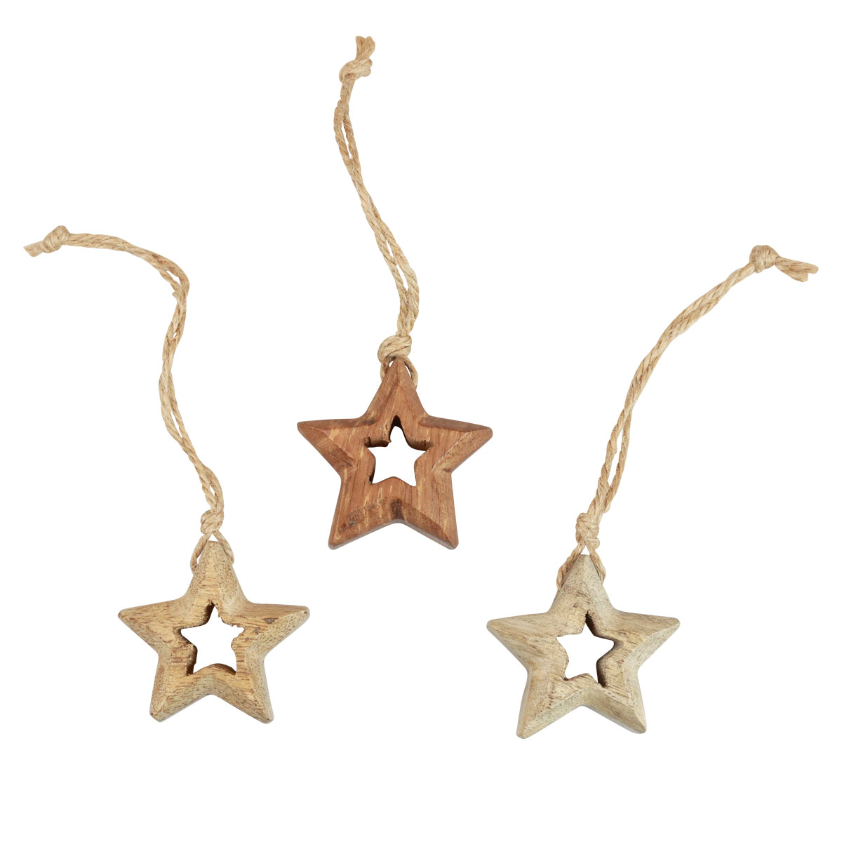 De hengende stjernene ble saget ut av massivt tre. Med den stjerneformede fordypningen i midten og de flate kantene imponerer de dekorative kleshengerne med sitt moderne design. Vakkert polert og varig uten glasur, det naturlige treet kommer til sin rett med disse julestjernene.