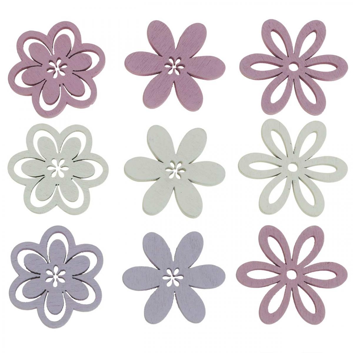 Treblomster spredt dekorasjonsblomster lilla/rosa/hvit Ø3,5cm 48 stk.