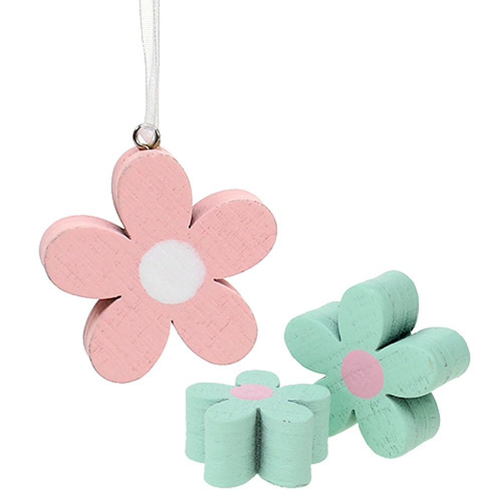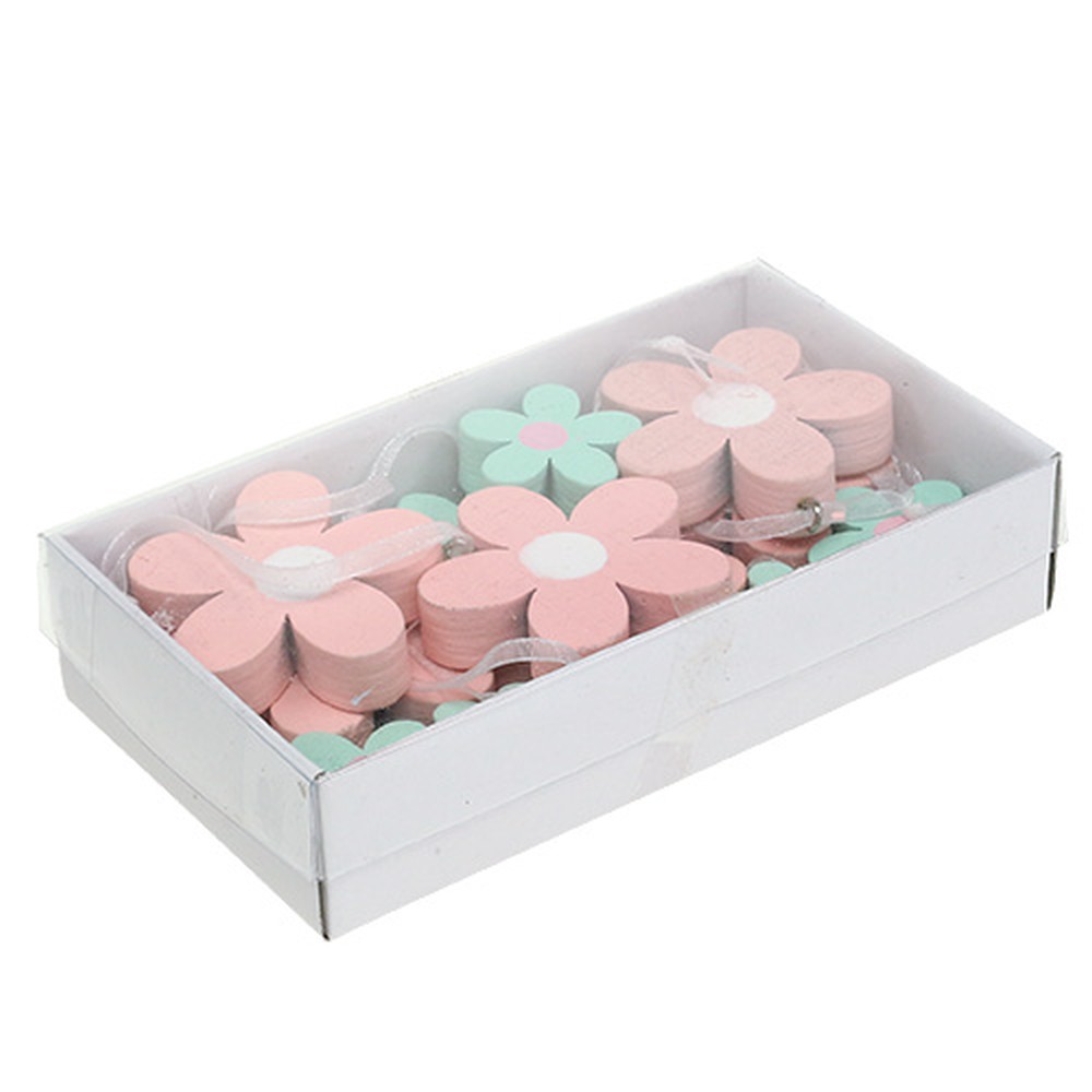 Produktnavn: Treblomster til oppheng, spredte dekorasjoner rosa, grønn 12 stk