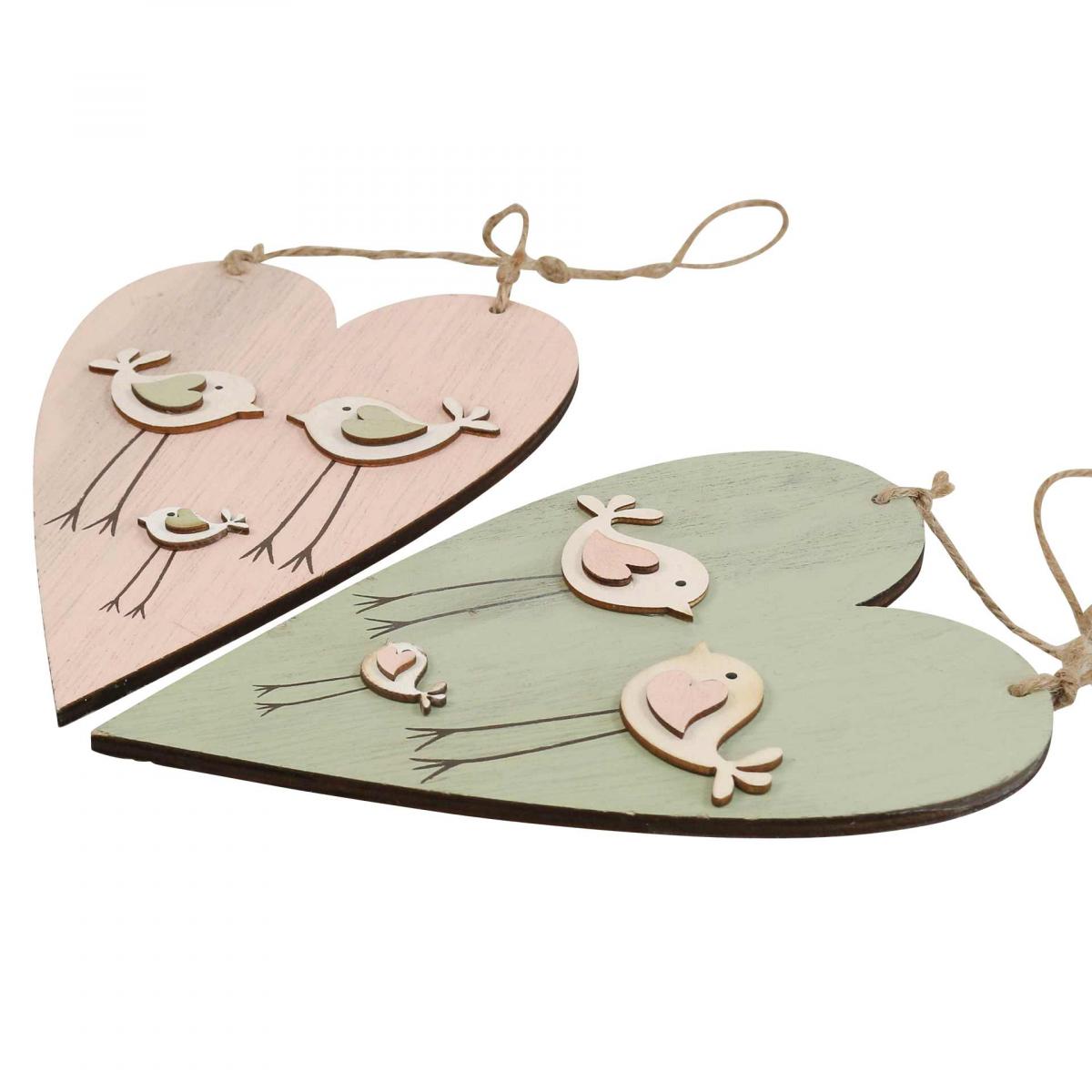 Du vil motta de dekorative hjertene klare til å henge opp med en jutesnor i et praktisk sett med 6 deler. Settet inneholder tre hjerteanheng i grønt og tre i rosa.
