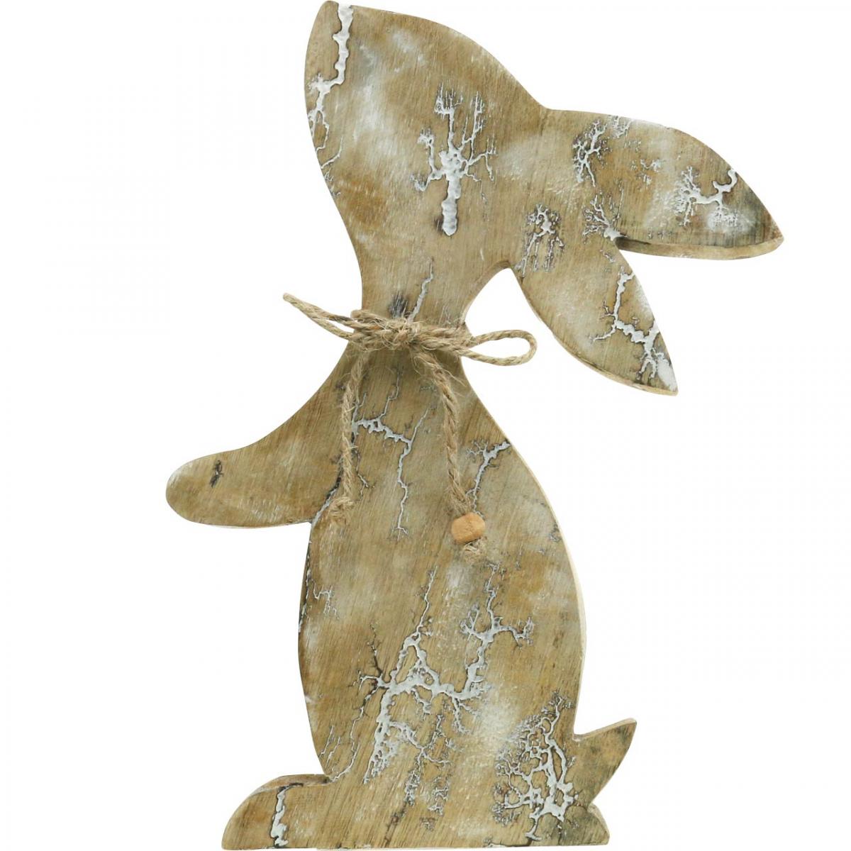 Produktnavn: Trekanin, vår, påskehare sittende, påskepynt med mønster naturlig, hvitvasket H26cm