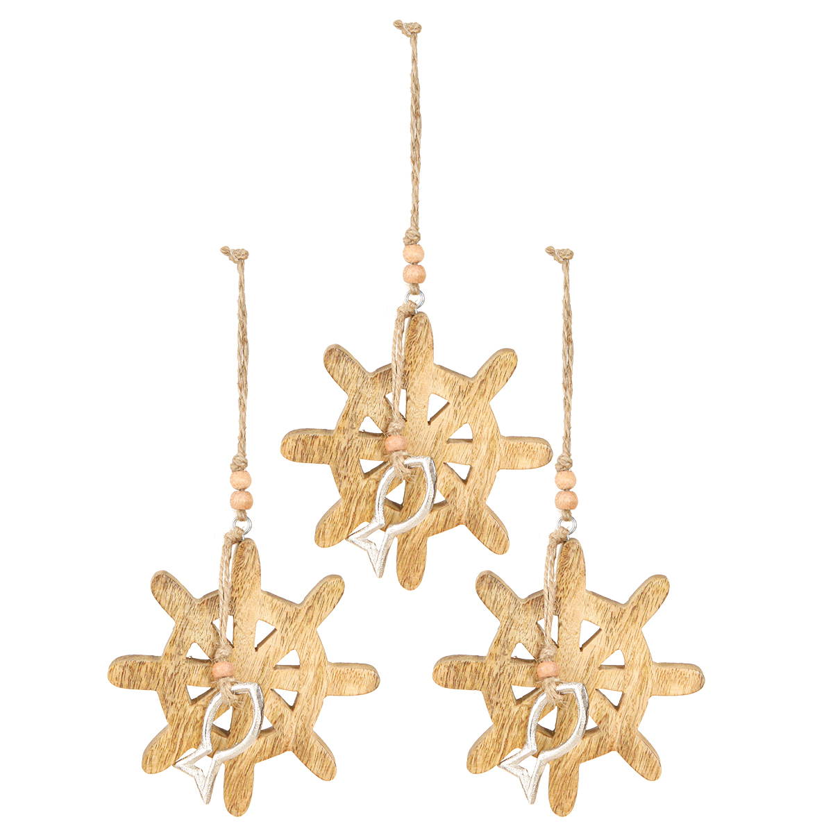 Produktnavn: Trerattdekorasjon metallfiskeanheng Ø12cm 3 stk