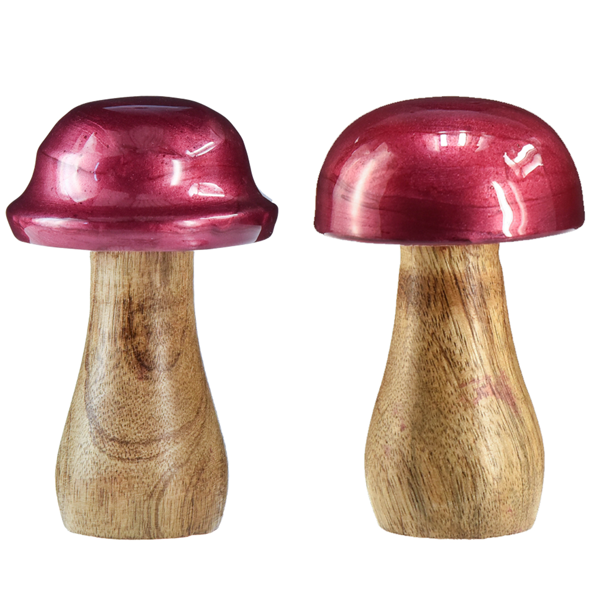 Våre dekorative sopp skinner i en skinnende rødfarge, som i kombinasjon med treets naturlige årring skaper et spesielt attraktivt utseende. Med en størrelse på Ø6cm og en høyde på 10cm er disse tresoppene ideelle for borddekorasjoner eller som uvanlig stuedekorasjon. Enten plassert som et enkelt stykke eller i en gruppe, er disse tresoppene som dekorasjon et ekte blikkfang. I tillegg er hvert stykke unikt og bringer naturens skjønnhet inn i hjemmet ditt.