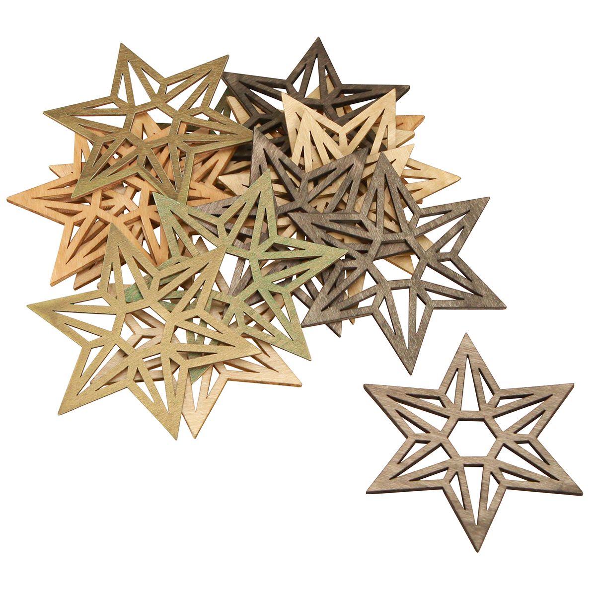 Trestjernene er forsiktig stanset ut og imponerer med sine fine åpninger og de naturlige vintagefargene, som minner om det rustikke landstedet eller shabby stilen. Disse holdbare og naturlige dekorative elementene ser flotte ut på festpyntede bord som julebordpynt eller som rustikk romdekorasjon. Med en hjemmelaget kleshenger kan du også gjøre stjernene om til juletrepynt.
