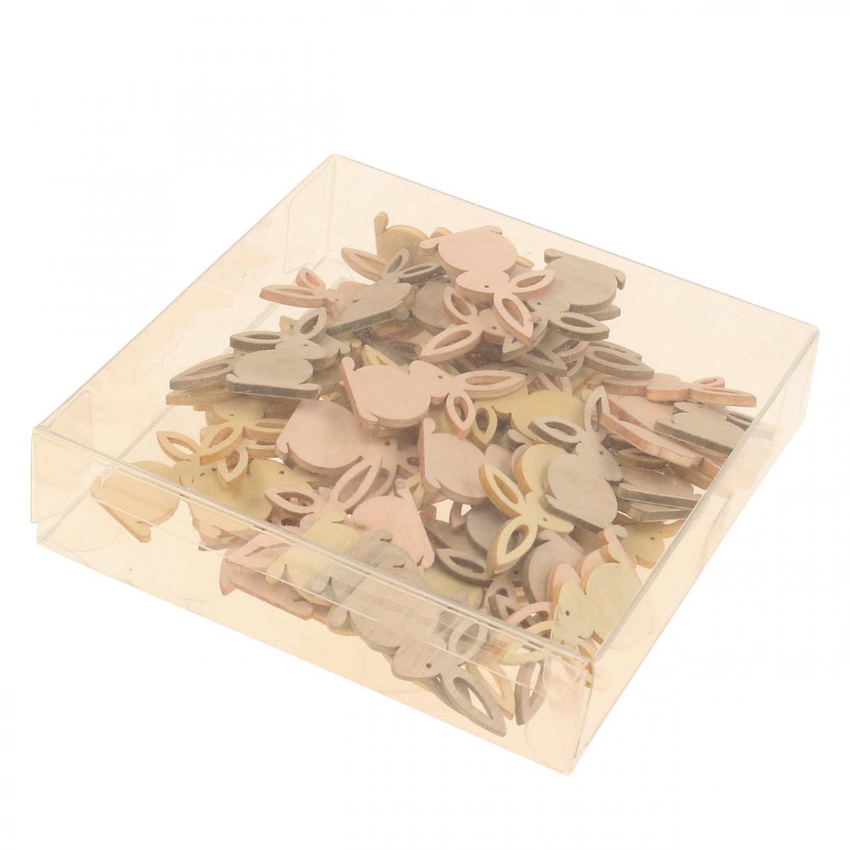 Trestrødekorasjoner, påskestrødeler, påskehare, gule toner 4 cm, 72 stykker