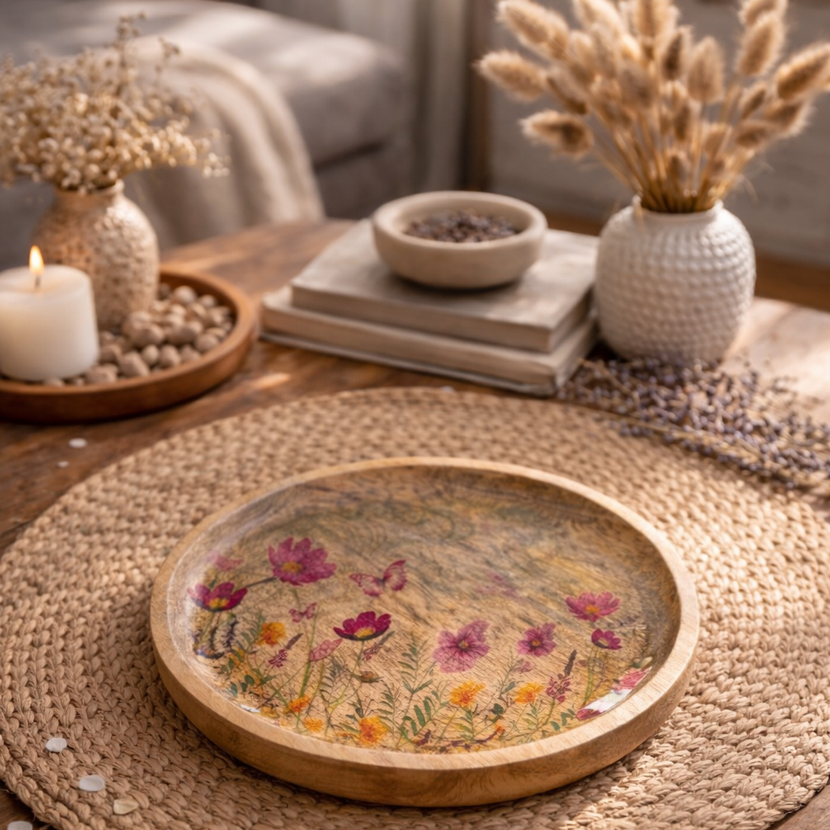 - Høykvalitets treplater med blomster- og sommerfuglmotiv