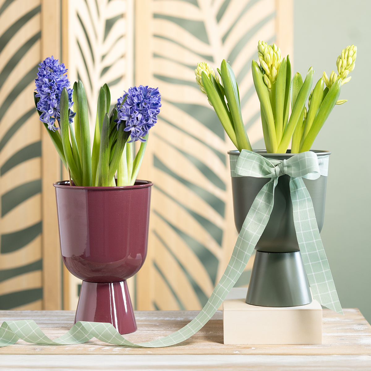 Leter du etter et tilbehør som gir hjemmet ditt et snev av eleganse og modernitet? Vår begerformede metallvase er det perfekte valget hvis du ønsker å skape en dekorativ aksent. Med sin harmoniske kombinasjon av rene linjer og moderne farger i en diskret grønnfarge, passer den uanstrengt inn i ethvert interiørdesign. Enten på spisebordet, i vinduskarmen eller som en del av et forseggjort blomsterarrangement i stuen – denne vasen imponerer med sin allsidighet og stil.