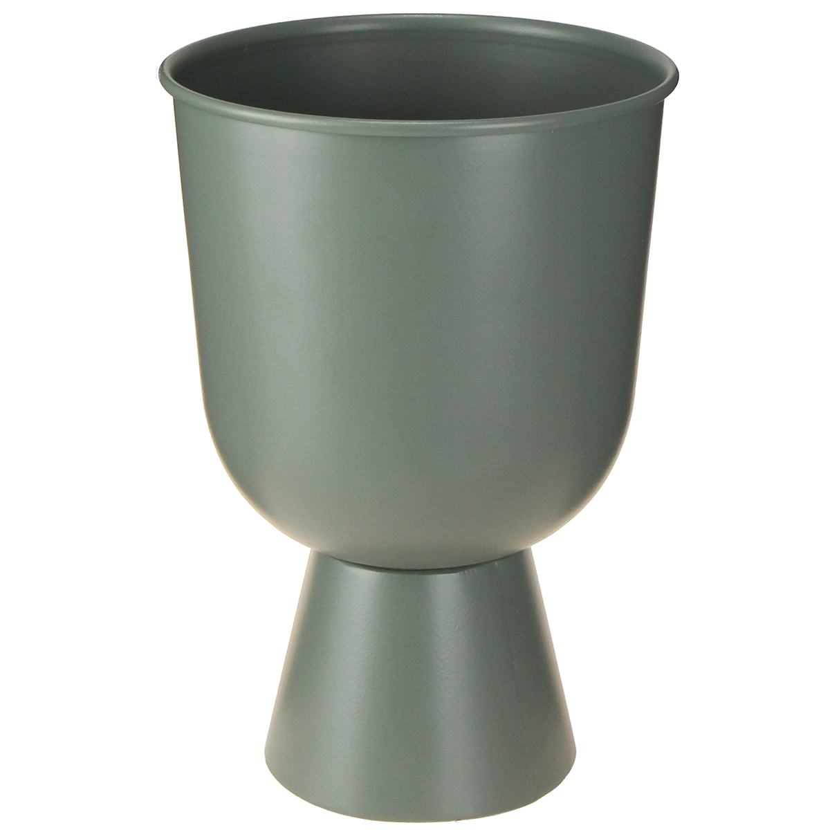 Denne begerformede vasen kombinerer form og funksjon på en sjarmerende måte. Med en høyde på 23 cm og en diameter på 16 cm gir den god plass til større blomsteroppsatser eller uvanlige dekorative utstillinger. Den matte grønne metallkroppen gir den et elegant utseende som komplementerer moderne interiørstiler som skandinavisk eleganse eller minimalistisk design på en vakker måte. For en mer koselig følelse, kombiner denne vasen med jordfarger eller varme treelementer.