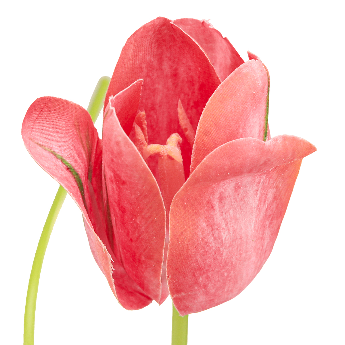 Den kunstige tulipanen gjør alltid et stort inntrykk som borddekorasjon til våren, i butikkvindudekorasjon eller til et vårarrangement. Høystilkblomsten egner seg meget godt som permanent blomsterdekorasjon til en høyvase. Den dekorative tulipanen kan absolutt sees alene - eller du kan arrangere en attraktiv trio sammen med den rosa tulipanen. Men tulipanen er også alltid tilgjengelig som en kunstig blomst med stort blomsterhode til kransen i vårpynt.