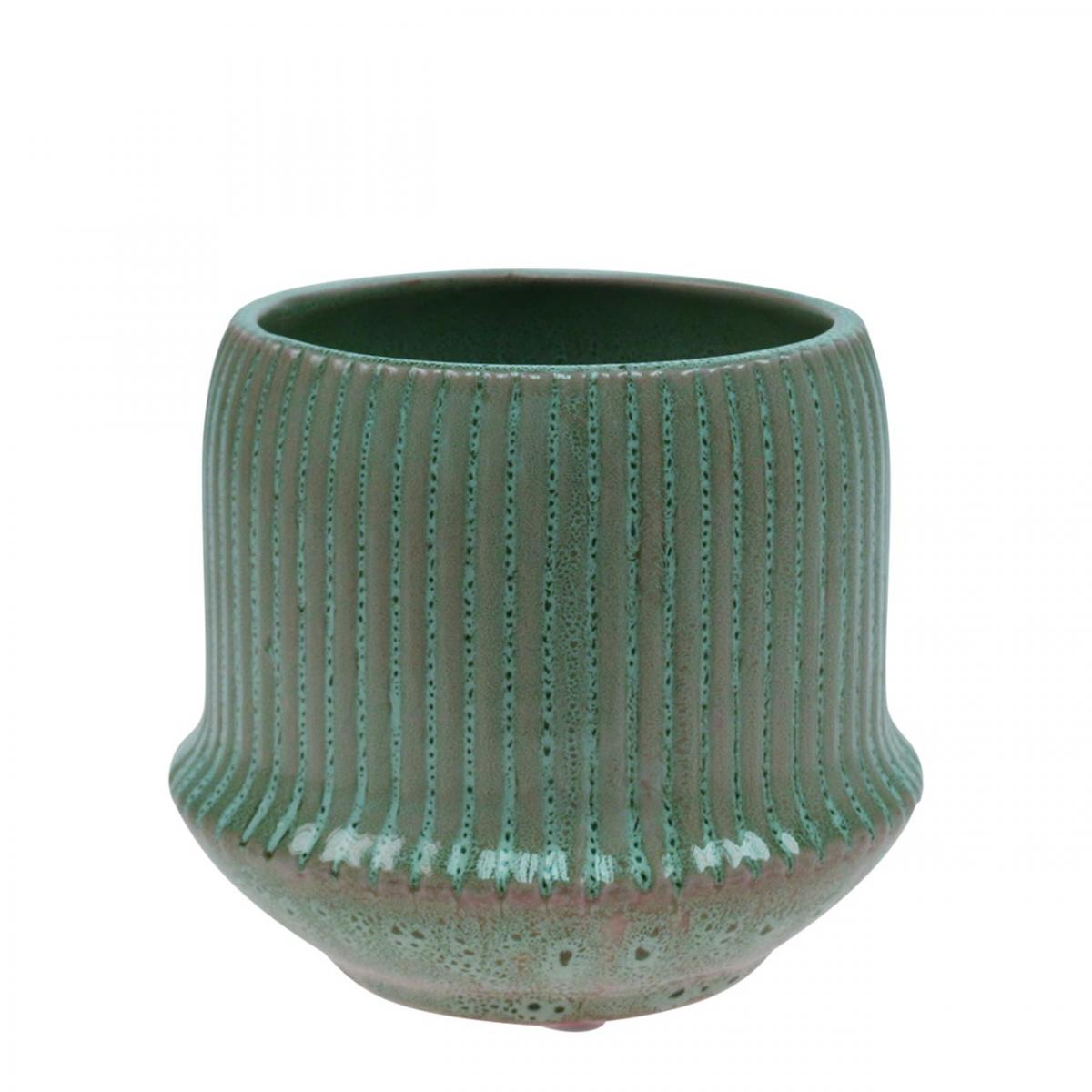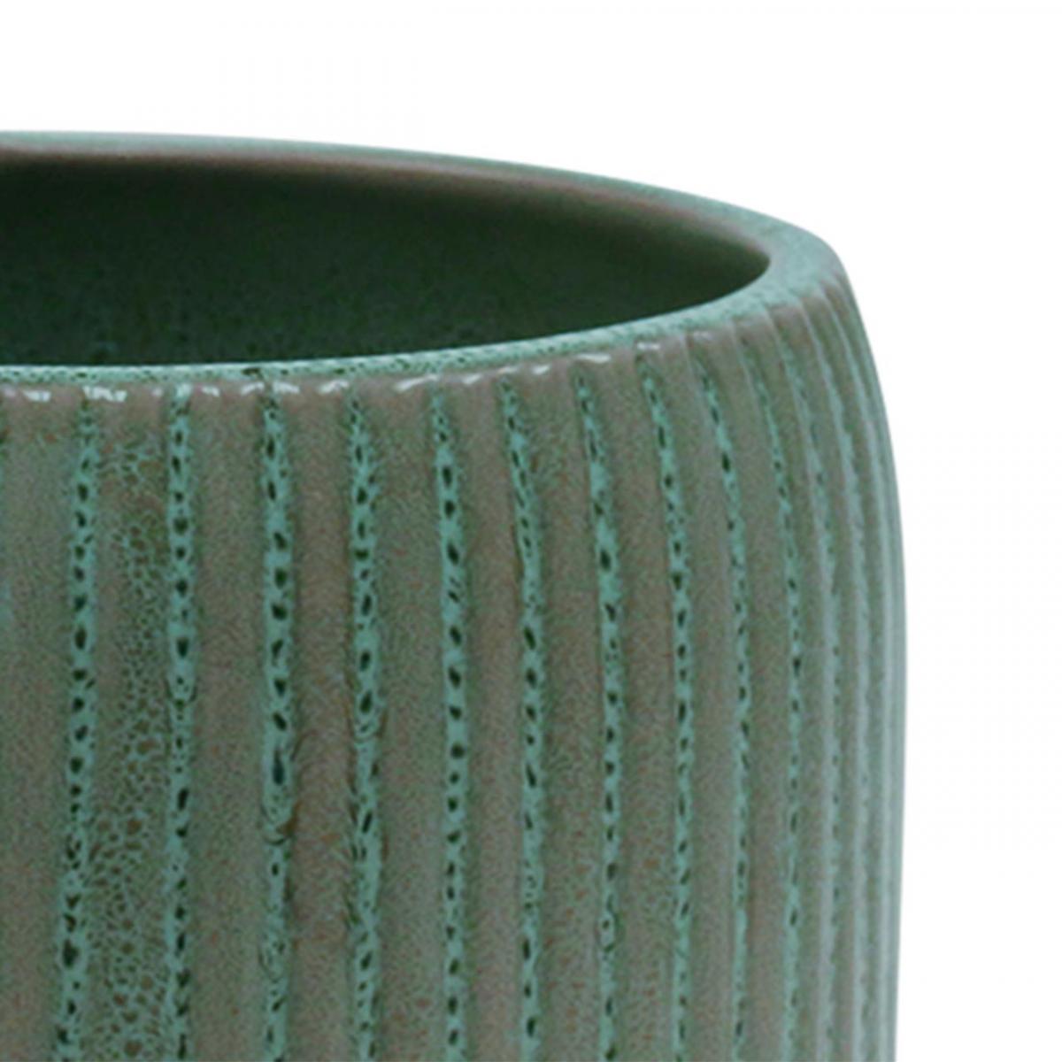 Urtepotte keramisk plantekasse med riller grønn Ø12cm H10,5cm