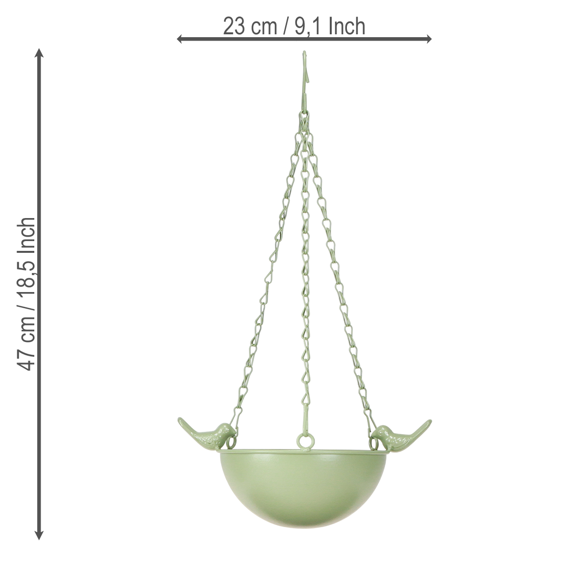 Det robuste kjedeopphenget gir sikkert feste til grener, balkongrekkverk eller små kroker på terrassen. Den værbestandige, robuste metallkonstruksjonen er spesielt praktisk og sikrer mange års glede av denne fuglemateren. De to dekorative fuglene gir materen en leken eleganse, noe som gjør den til det perfekte tilskuddet for elskere av landlig stil eller naturinspirert innredning.