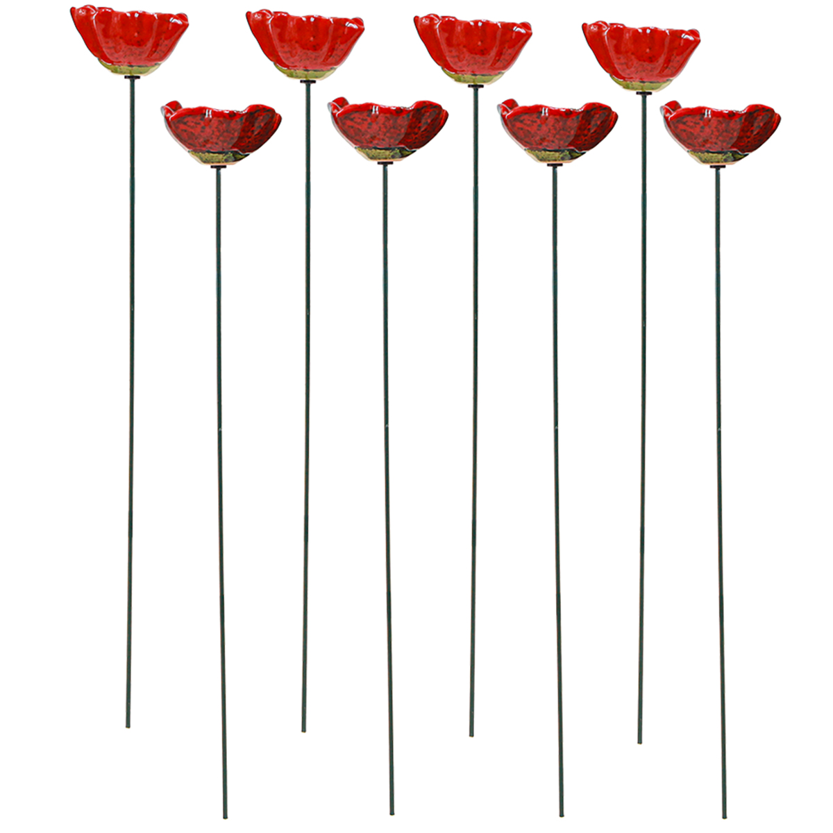 Valmue keramikk dekorativ blomsterplugg valmuerød 5cm 8 stk