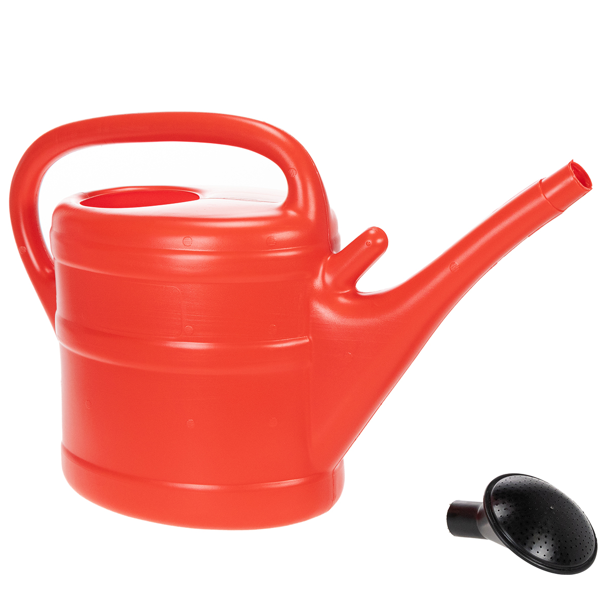 Den røde vannkannen er laget av slitesterk plast og leveres med en avtakbar tut.